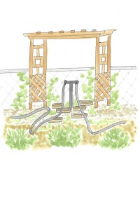 Down the lot and through the garden we tread.